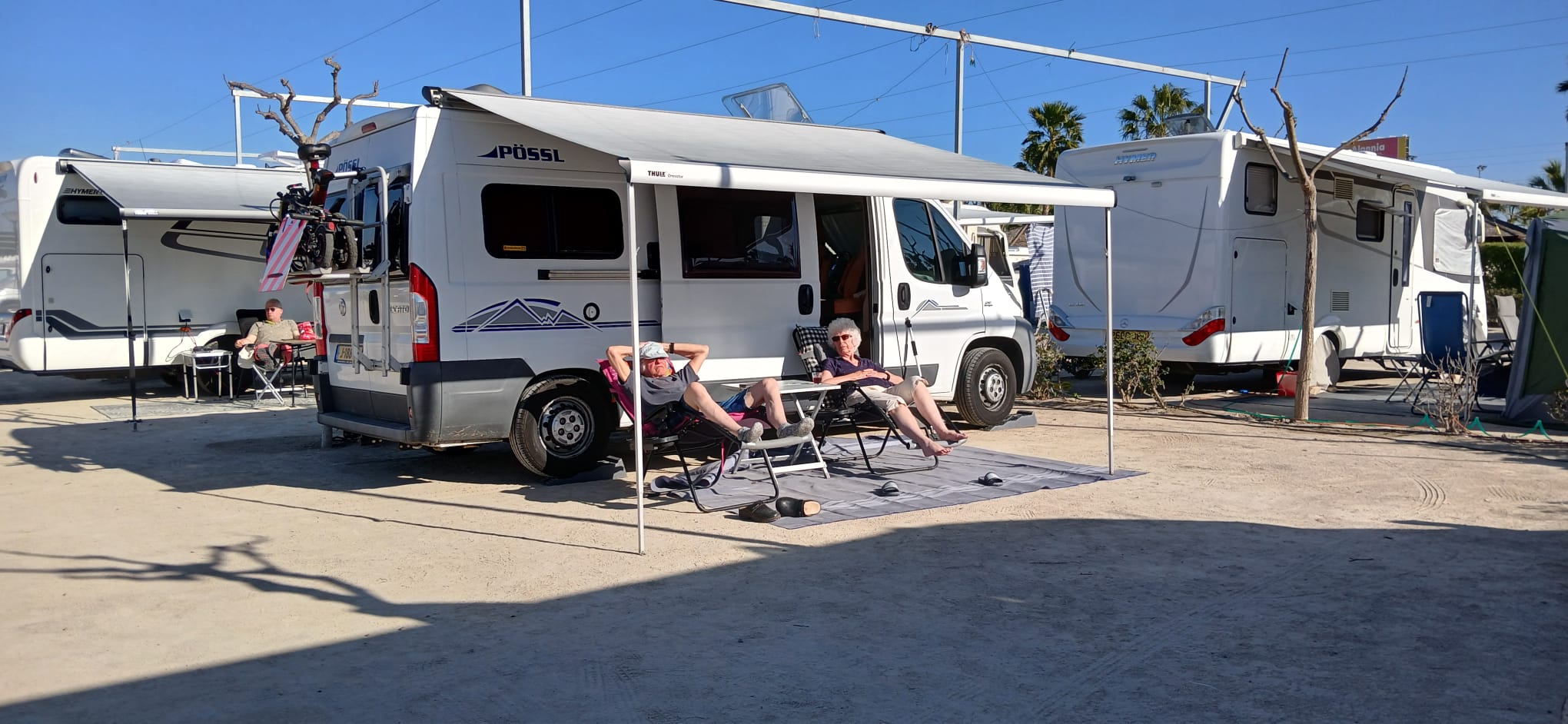 We zitten nu in de streek van Alicante op de camping Alannia Costa Blanca, we drinken sangria, uit een literfles zo uit de koelkast!